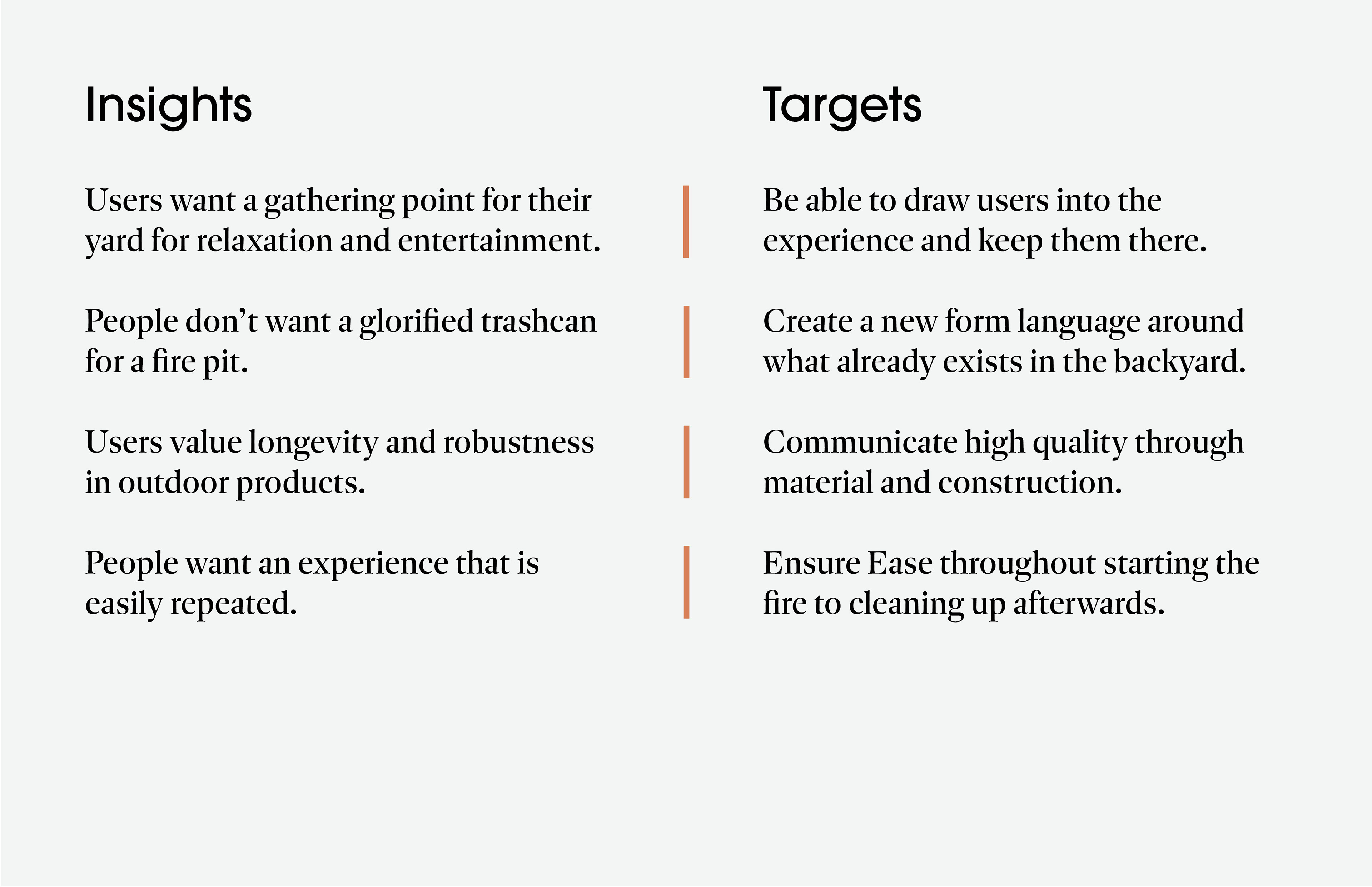 This firepits form and material need to feel like it truly belongs in the backyard.